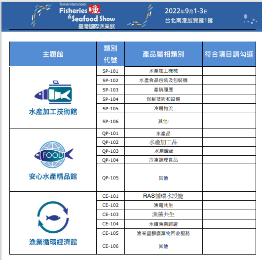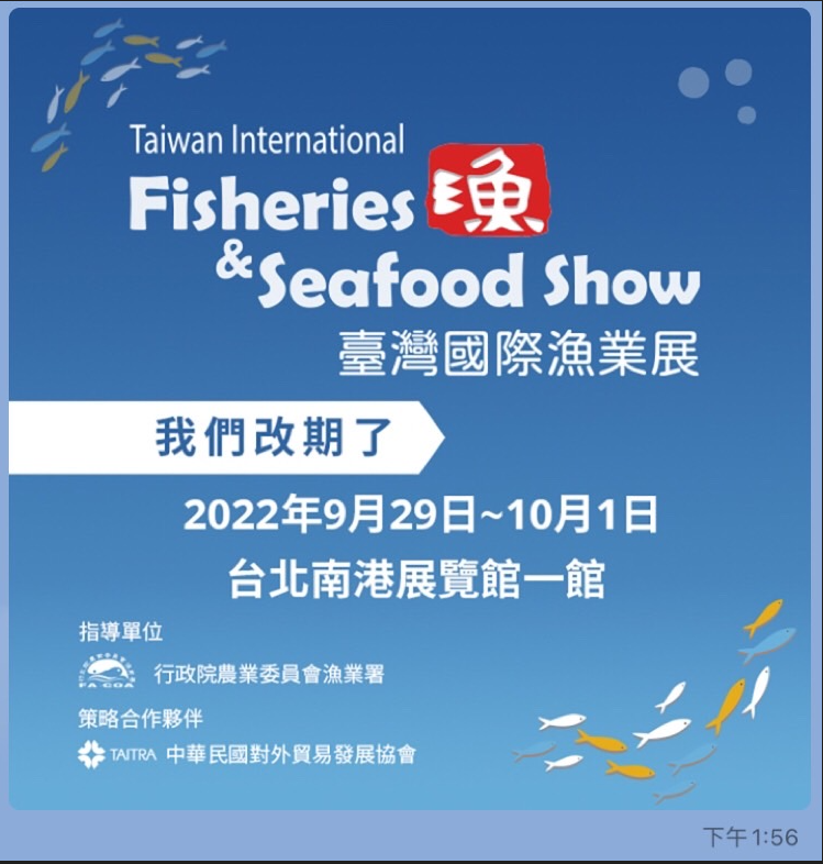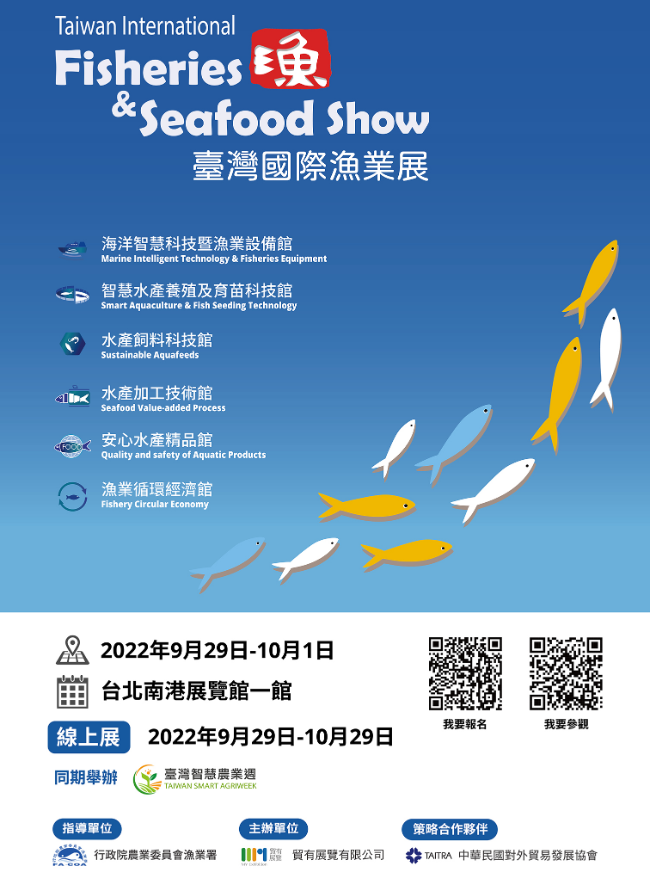 本會參加2022台灣國際漁業展(9/29~10/1)公開徵展,本展覽獲國際貿易局補助。